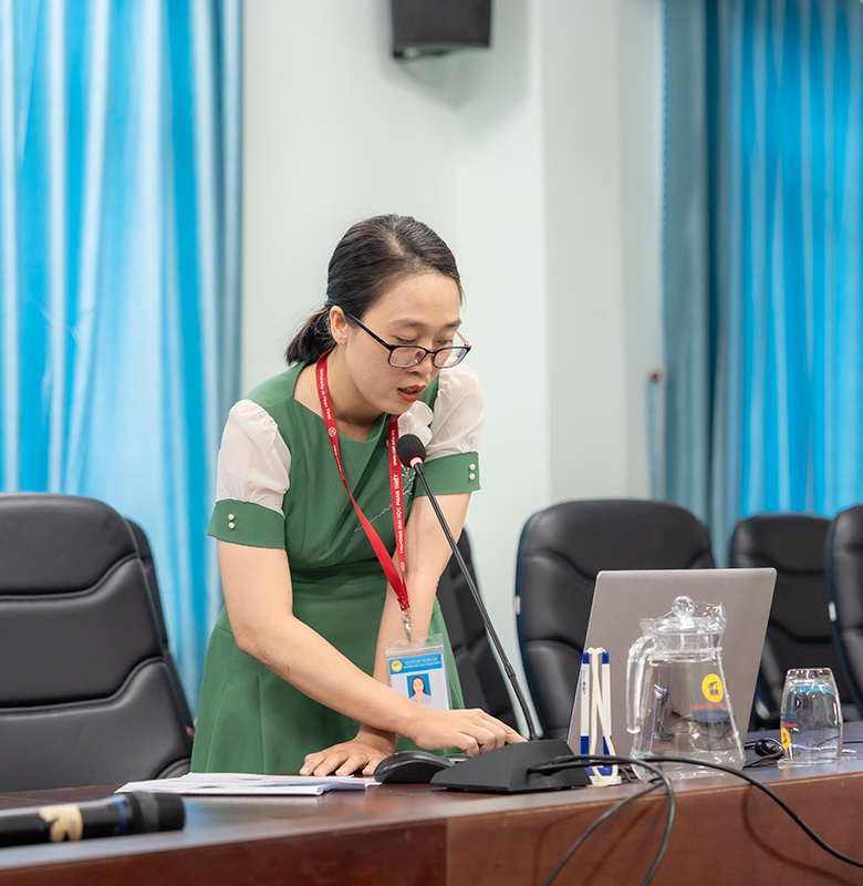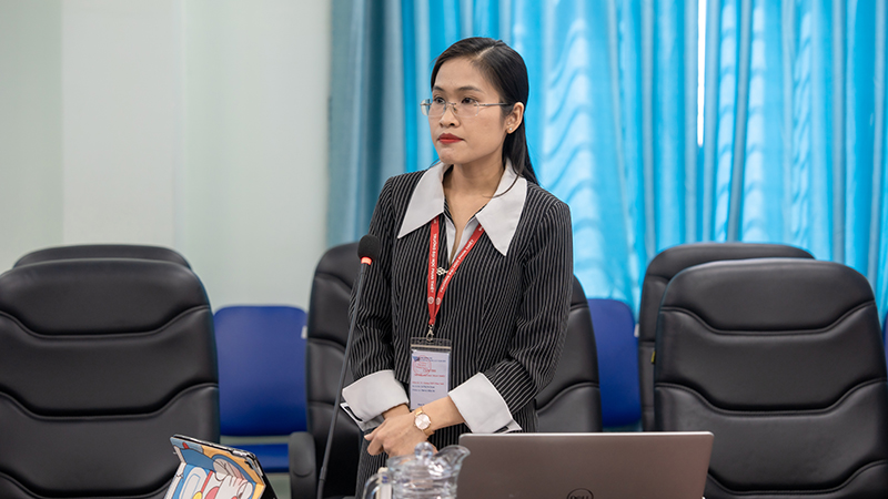 ThS. Lê Thị Tú Trinh trình bày báo cáo kết quả nghiên cứu đề tài NCKH cấp trường