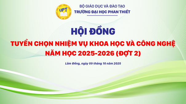 Chiều ngày 09/10/2025 (thứ 5), tại phòng họp 205, Trường Đại học Phan Thiết đã tổ chức Hội đồng tuyển chọn Nhiệm vụ Khoa học và Công nghệ, năm học 2025-2026 (Đợt 2) theo Quyết định số 513/QĐ-ĐHPT ngày 03/10/2025 của Hiệu trưởng Trường Đại học Phan Thiết.