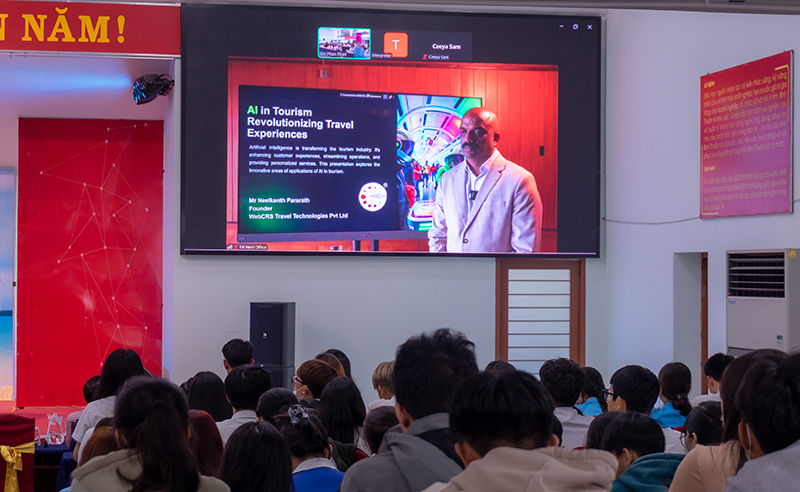 Ông Neelkanth Pararath – Nhà sáng lập, Tổng Giám đốc Công ty TNHH WebCRSTravel Technologies trình bày (trực tuyến) tham luận “AI in tourism revolutionizing travel experiences”