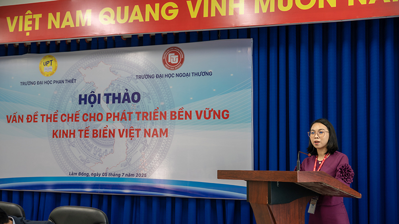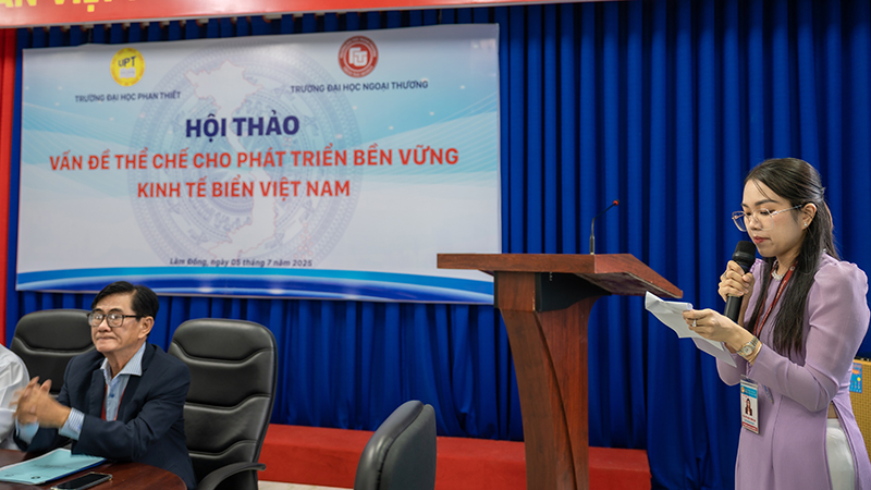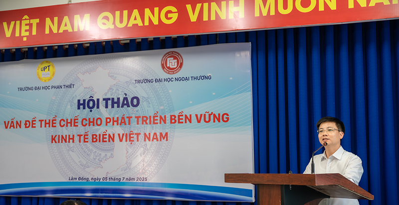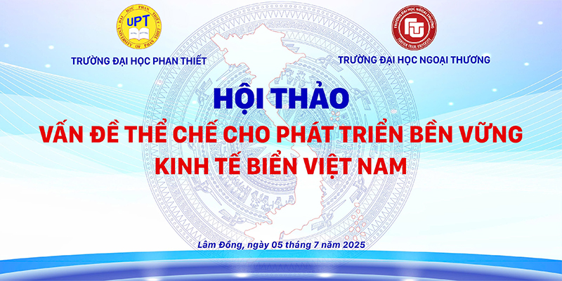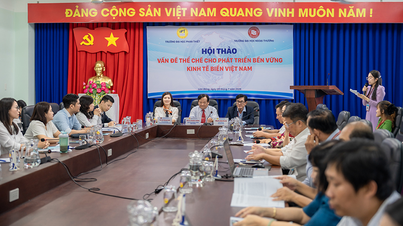 Chiều ngày 05/7/2025 (thứ 7), Trường Đại học Phan Thiết đã phối hợp cùng Trường Đại học Ngoại thương tổ chức Hội thảo “Vấn đề thể chế cho phát triển bền vững kinh tế biển Việt Nam” tại phòng họp 205 - Trường Đại học Phan Thiết.