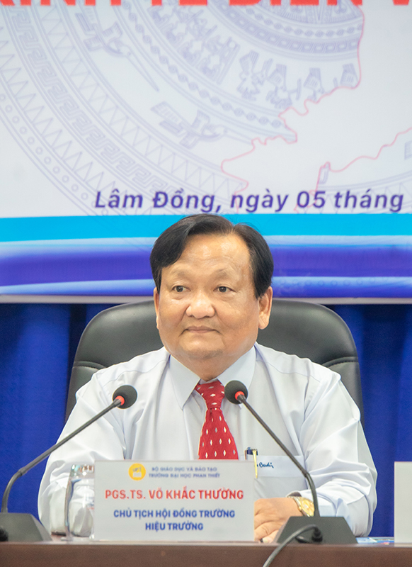 Phát biểu khai mạc Hội thảo, PGS,TS. Võ Khắc Thường – Chủ tịch Hội đồng trường, Hiệu trưởng Trường Đại học Phan Thiết cho biết Hội thảo nhằm tạo diễn đàn học thuật để các nhà nghiên cứu, các giảng viên từ Trường Đại học Ngoại thương và Trường Đại học Phan Thiết cùng nhau trao đổi quan điểm, chia sẻ kết quả nghiên cứu, kinh nghiệm thực tiễn về thể chế phát triển bền vững kinh tế biển. Bên cạnh ý nghĩa chuyên môn, Hội thảo cũng là một hoạt động thường xuyên trong hợp tác học thuật giữa Trường Đại học Phan Thiết và các trường đại học, viện nghiên cứu trên cả nước. Đây là dịp để giảng viên, sinh viên giao lưu, học hỏi, tiếp cận các vấn đề thực tiễn, đồng thời thúc đẩy tinh thần đổi mới sáng tạo, khởi nghiệp, những giá trị mà nhà trường luôn hướng đến trong sứ mệnh đào tạo nguồn nhân lực chất lượng cao.