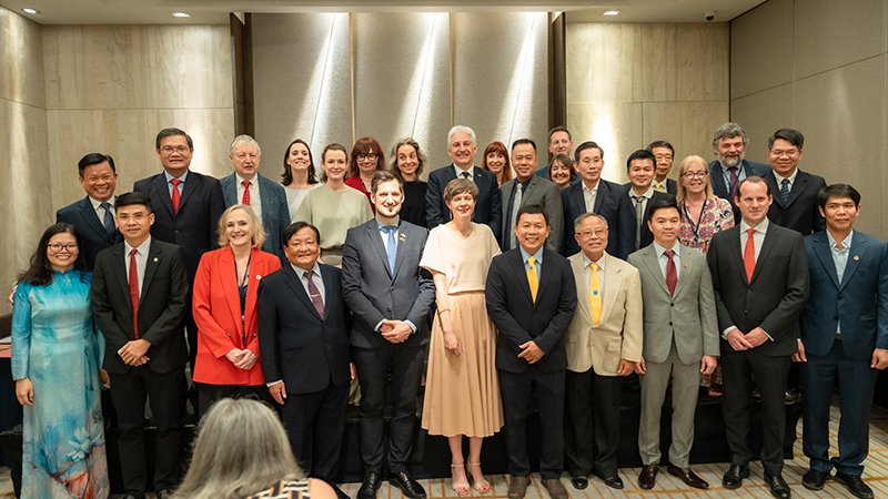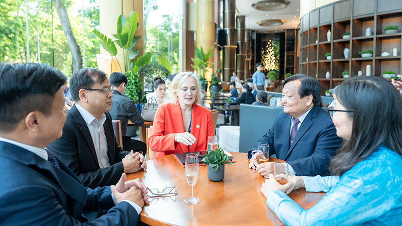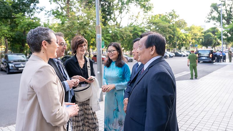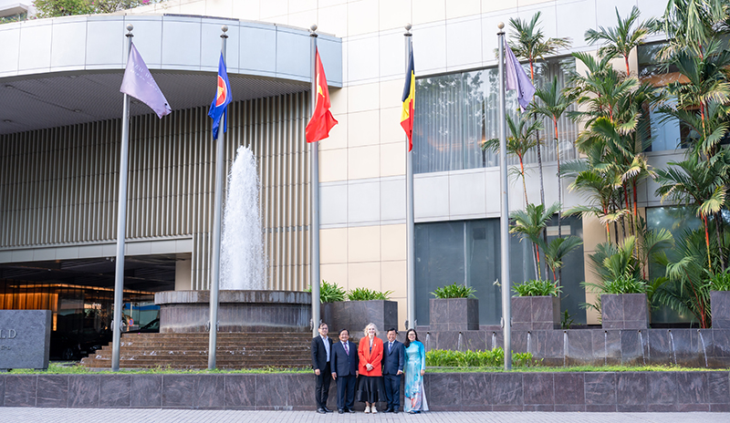 Tháp tùng Nhà vua và Hoàng hậu có sự tham dự của đại diện 16 trường đại học, viện nghiên cứu hàng đầu của Vương quốc Bỉ, trong đó có Đại học Liège - đối tác nghiên cứu khoa học của Trường Đại học Phan Thiết.
