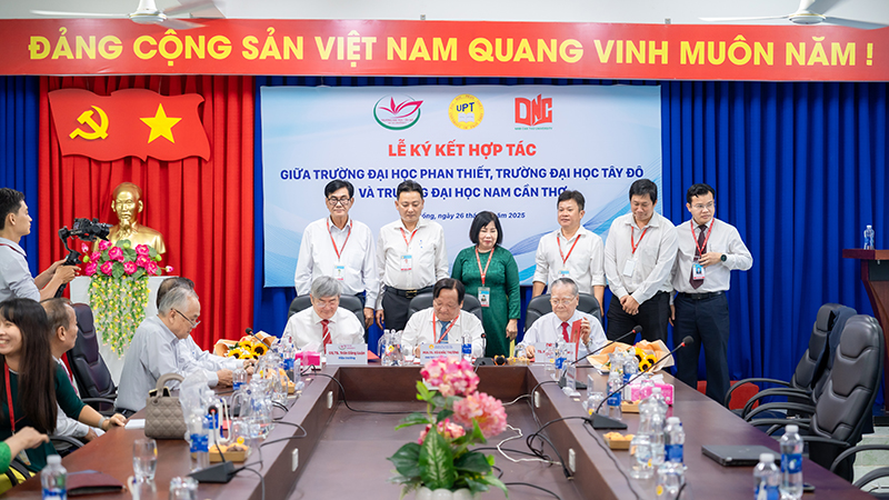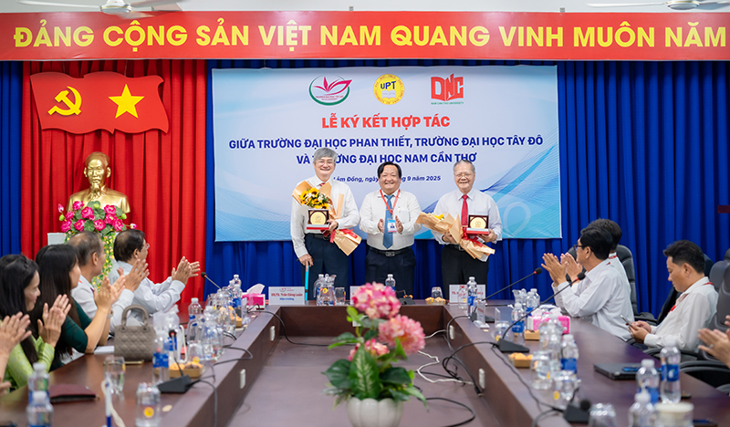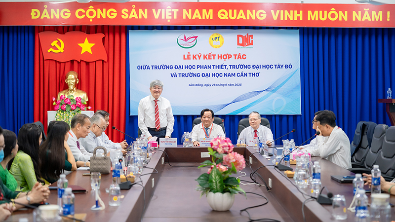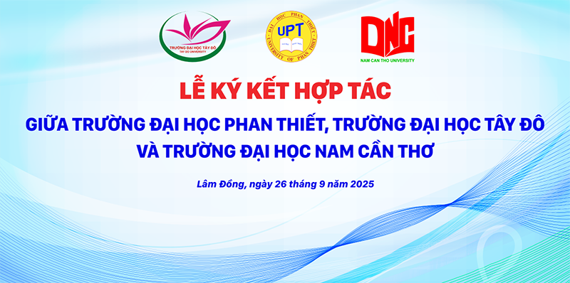 Chiều ngày 26/9/2025, tại Trường Đại học Phan Thiết đã diễn ra Lễ Ký kết Thỏa thuận Hợp tác giữa Trường Đại học Phan Thiết, Trường Đại học Tây Đô và Trường Đại học Nam Cần Thơ.